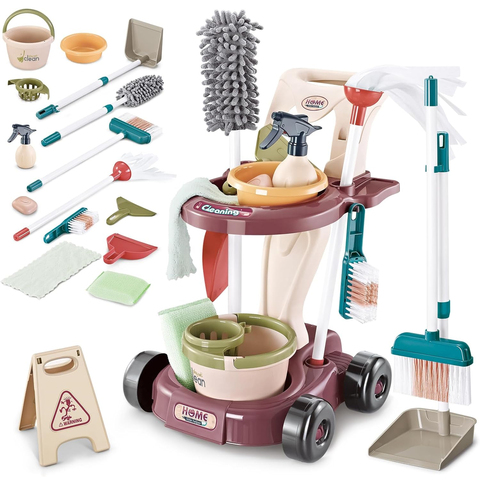 Multi-style Educational Preschool Pretend Play Simulation House Kids Toy Cleaning Cart Tool Set with Vacuum Cleaner