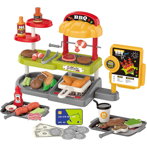 Wholesale Customized Simulation Plastic BBQ Barbecue Grill Play Kitchen Set Pretend Play Fashion Foods for Children Kids