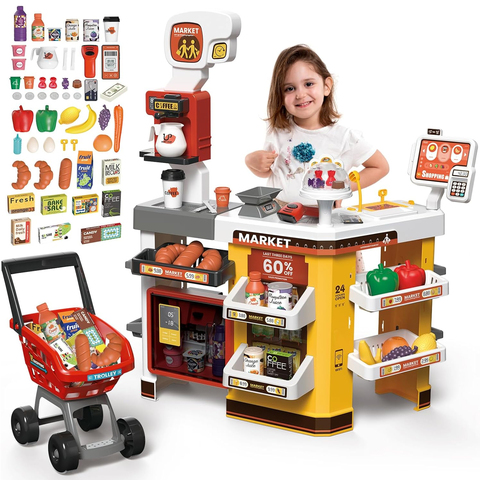 Kids Educational Pretend Play Preschool Big Shopping Toy Baby Simulation Supermarket Cash Register Toy for Kids Children