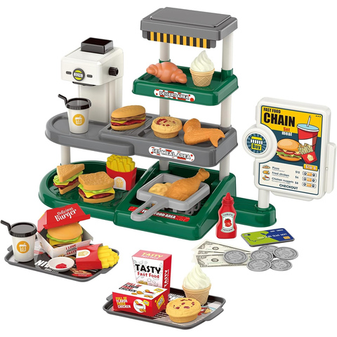 Hot Selling Indoor Red Fast Food Toy Set Customized Birthday Gifts Plastic Kitchen Food Pretend Play Toys for Kids Children
